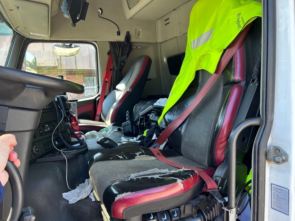 Cruise controlAir conditioningElectric windowsHeated mirrorsElectrical mirrorsDriver seat air-cushionedHeated seatsSingle bunkCB radioAdjustable steering wheelOn board computerToolboxDifferential lockPTODisc brakesAd blue